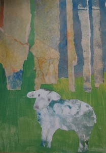 Prent: Schaap uit: prentenboek Kabouter heeft een kamer vrij